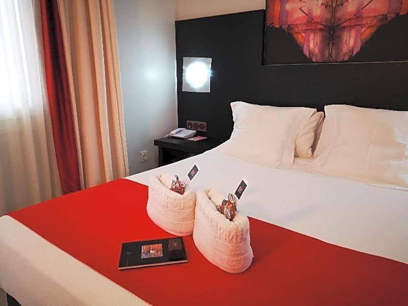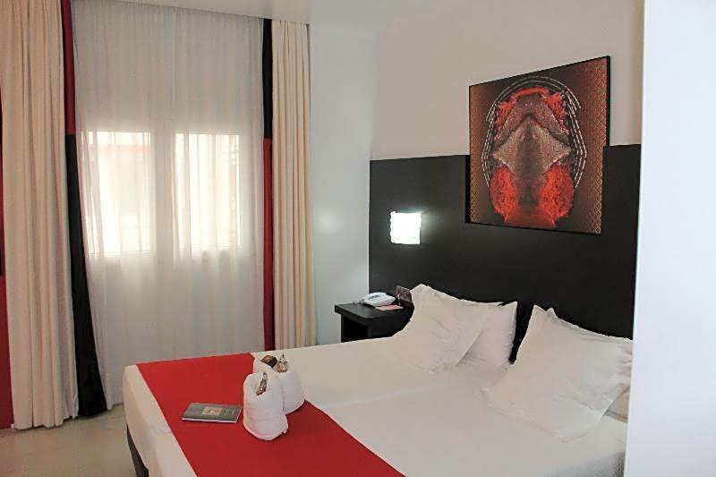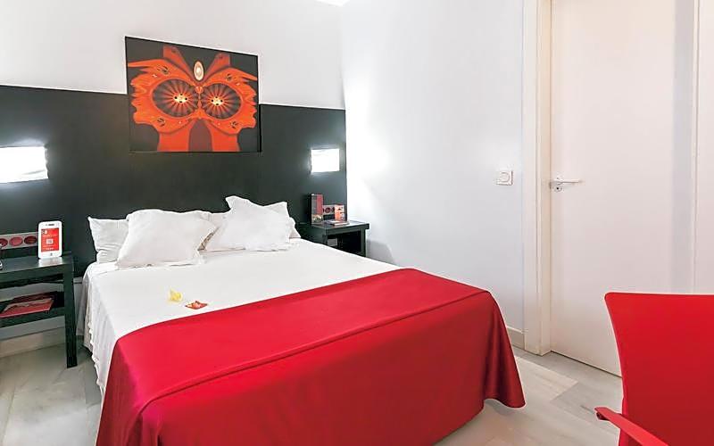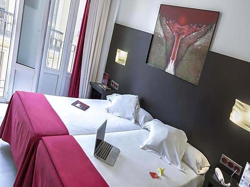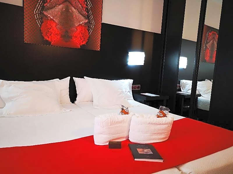 The hotel prides itself on its unique decor, with each room being individually designed by Malaga poet and painter Pepe Bornoy. The rooms are air-conditioned and adorned with contemporary artwork in red and black tones. They offer modern amenities such as free Wi-Fi, soundproofing, a work desk, satellite TV, and a private bathroom equipped with a hairdryer.